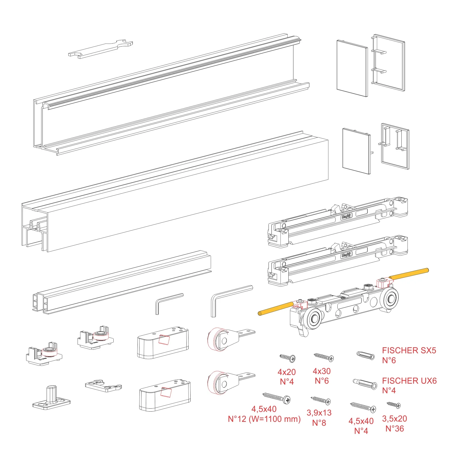PVD Magic 2 Uni set za drvena pregradna vrata do 80kg Magic 2 Uni set predstavlja inovativno rešenje za izradu drvenih pregradnih vrata u enterijeru. Magic 2 Uni je specifičan sistem koji u set sadrži aluminijumske dekorativne profile koji se montiraju na sama vrata, a ujedno vrše funkciju gornje šine i donje vodjice, kao i novu seriju FLUID usporivača koji omogućavaju beskprekorno zaustavljanje vrata prilikom kretanja. Debljina drvene ispune koja je koristi za ovaj sistem je od 38 do 40mm. U prodajnom setu se nalaze svi elementi za izradu jednih kliznih pregradnih vrata. Maksimalna širina vrata: 1100mm Završna obrada: Brušeno srebro *Cena se odnosi na set mehanizma Na našem YouTube kanalu možete pogledati i video prezentaciju Magic2 Uni sistema.