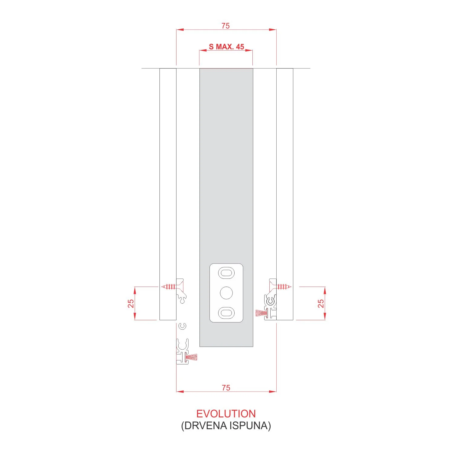 Baza i gornja šina za Pocket sistem skrivenih vrata Baza i gornja šina se koriste za izradu staklenih i drvenih kliznih vrata koja se montiraju unutar zida (između gipasnih ploča). Baza je široka 75mm, dok gornja šina ima na sebi prihvatnike koji omogućavaju laku montažu na bazni profil. U cenu ulaze bazni profil i gornja šina u dužini od 250cm dužine. U segmentu "Brošure" možete pronaći PDF dokument u kome se nalaze svi detalji vezani za Pocket sistem. Takođe možete pogledati i video prezentaciju same montaže: - Za staklena vrata - Za drvena vrata