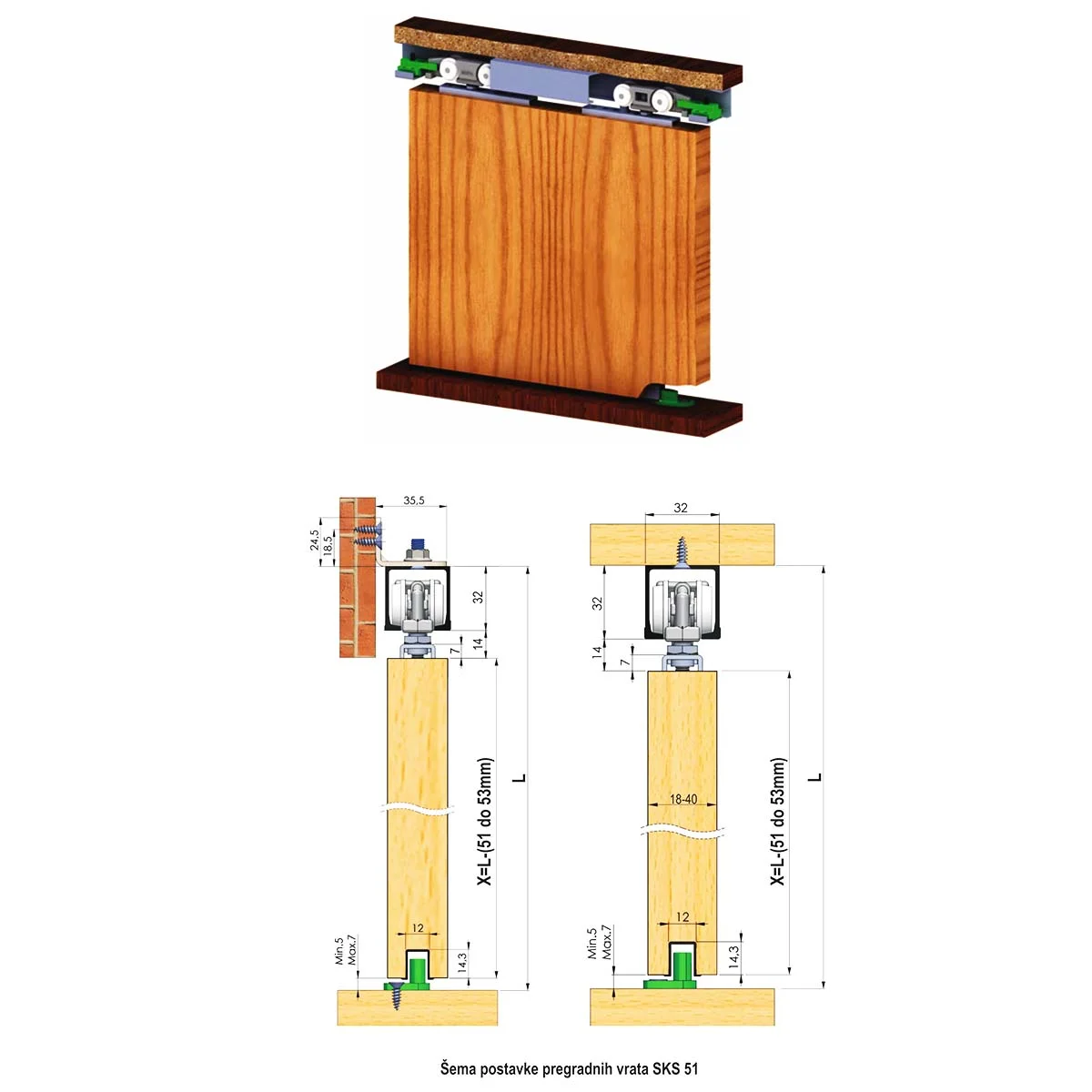AL 51/M aluminijumska šina Šina se koristi kao gornja (nosiva) šina za SKS 51 mehanizam. Prodajne dužine šine su : 1.5m,2m,3m,4m i 6m.