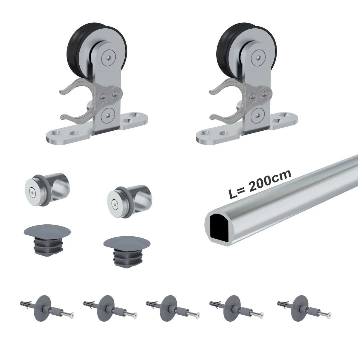 Venus 01- metalni mehanizam za drvena pregradna vrata Metalni mehanizam za drvena pregradna vrata nosivosti do 40 kg. Za debljinu vrata od 30mm do 42mm. Maksimalna širina vrata je 850mm . Dužina šine je 2000mm.