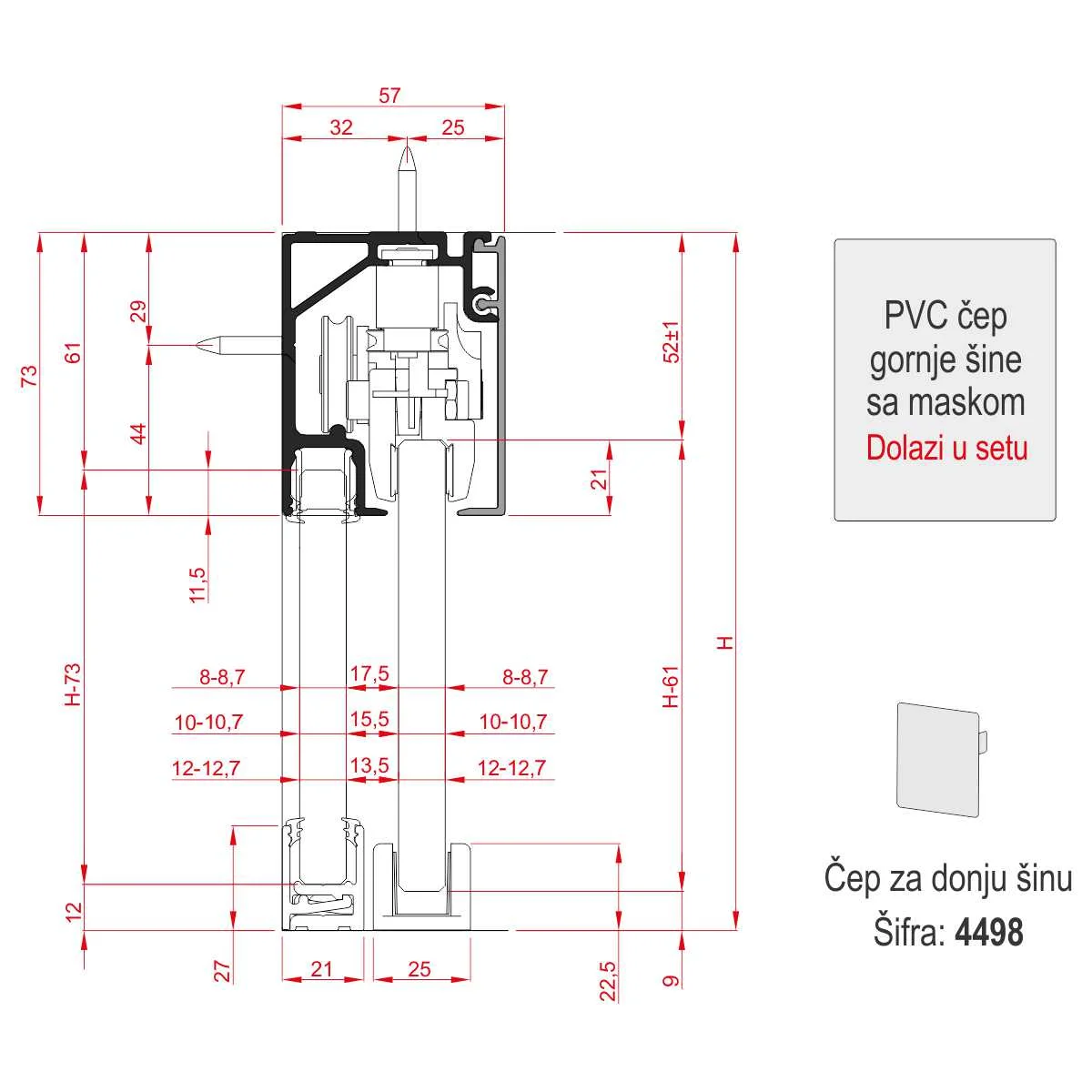 Maska gornje šine za Solo Vetro klizni sistem Al maska se je kompatibilna sa gornjom šinom za Solo Vetro sistem i montira se uz pomoć gumenih umetaka koji dolaze u prodajnom setu sa Solo vetro mehanizmima. Materijal: Eloksirani aluminijum Završna obrada: Srebro mat eloksaža * Cena se odnosi na dužni metar profila