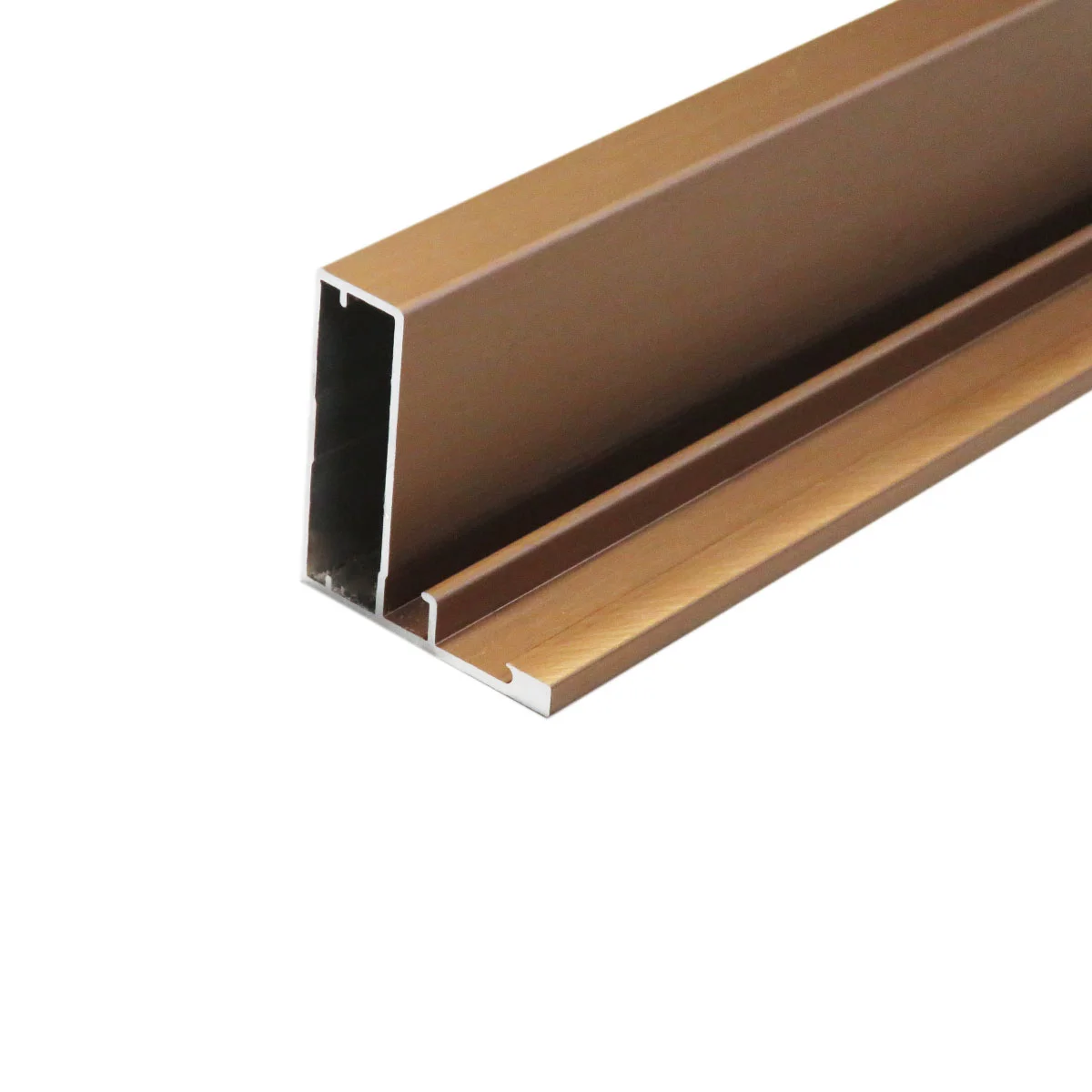 RAM 1002A/N profil sa ručkom - brušeno zlato Profil se koristi za izradu aluminijumskih frontova sa staklenim ispunama debljine 4mm. Kod izrade Al rama, dimenzija stakla umanjuje se za 7mm od ukupne dimenzije rama. Profil ima integrisanu ručicu i koristi se isključivo sa RAM 1002A/N profilima prilikom izrade Al ramova. Materijal: Eloksirani aluminijum Obrada: brušeno zlato eloksaža * Cena se odnosi na dužni metar profila. Ukoliko montirate šarke naša preporuka je da koristite šraf 3,5x13 ili pop nitne.