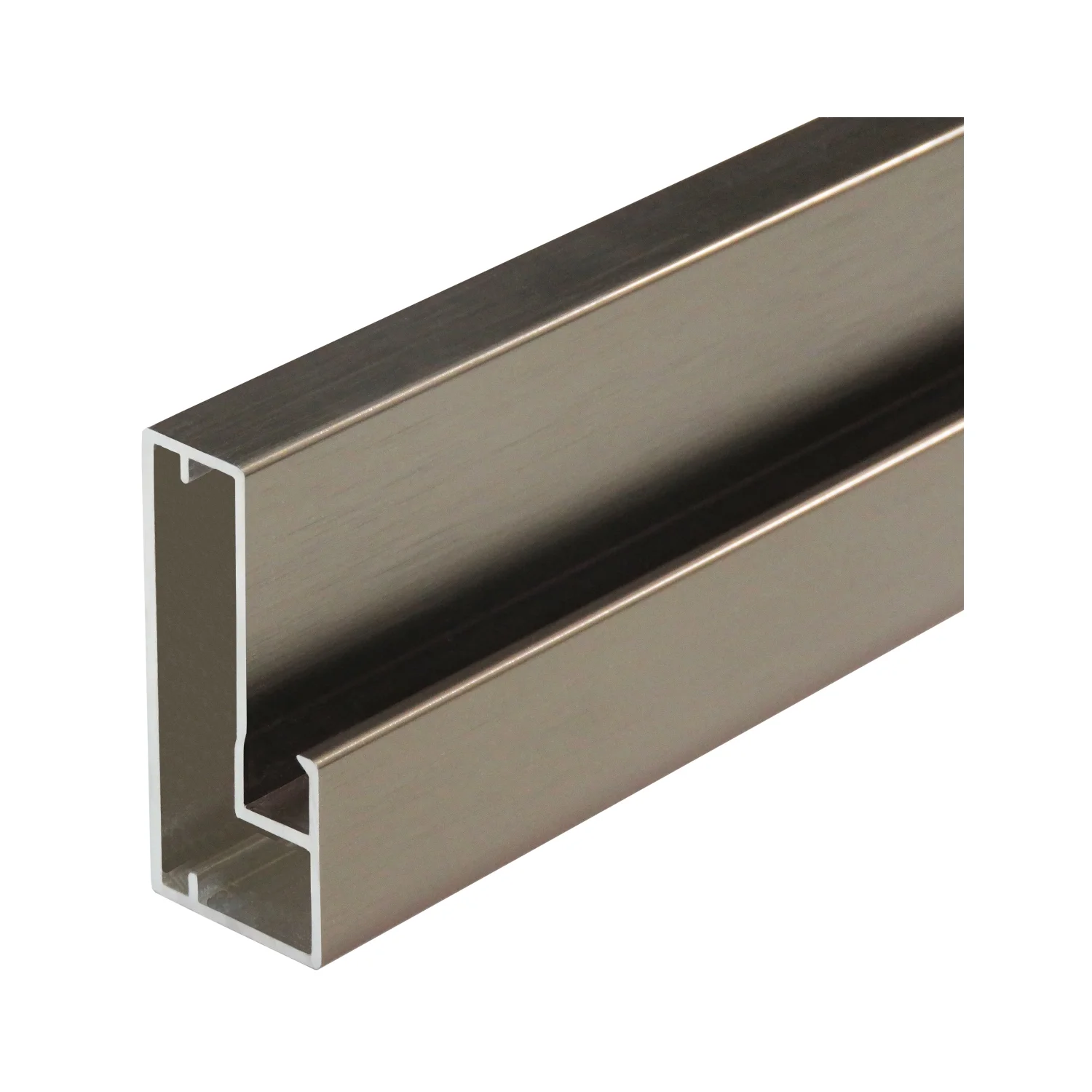 RAM 1002 D brušena bronza je aluminijumski ram profil za izradu fronta od stakla debljine 4mm. Kod izrade Al rama, dimenzija stakla umanjuje se za 28mm od ukupne dimenzije rama! PVC profil koji se postavlja unutar samog rama odvaja staklo od konstrukcije, tj. sprečava direktan dodir stakla i aluminijuma. PVC profil poručuje se odvojeno od Al RAM profila. Završna obrada profila je hemijska eloksaža. Dužina RAM 1002 D aluminijumskog profila je 5,5m. Prodajna dužina profila: 2,75m i 5,5m. Boja eloksaže: brušena bronza. * Cena se odnosi na dužni metar profila Ukoliko montirate šarke naša preporuka je da koristite šraf 3,5x13 ili pop nitne.
