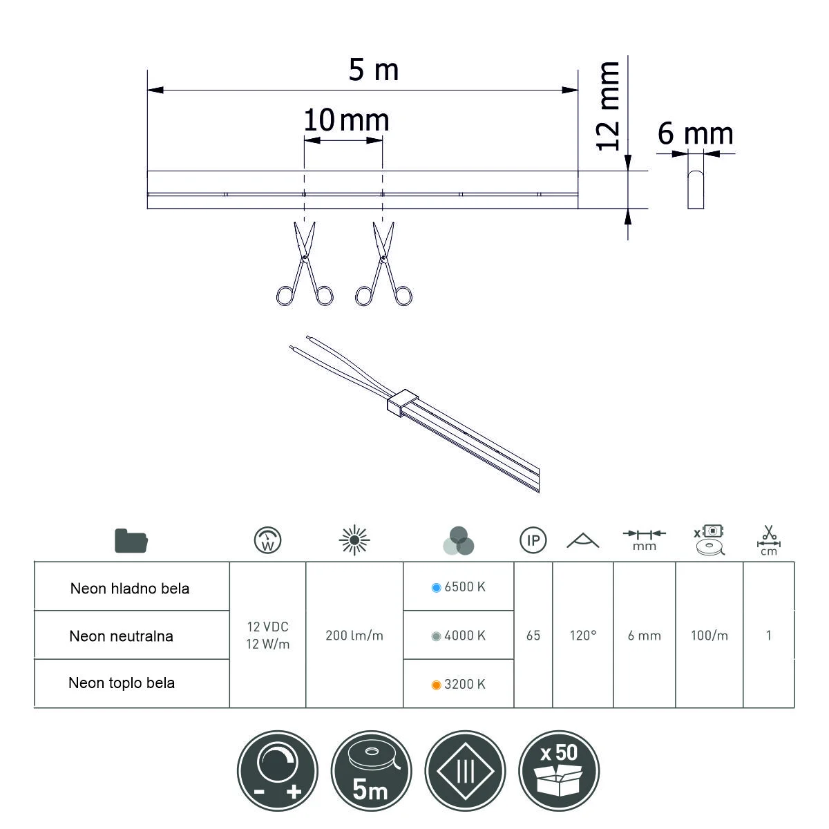 RAS LED traka NEON WW toplo bela 5m GTV