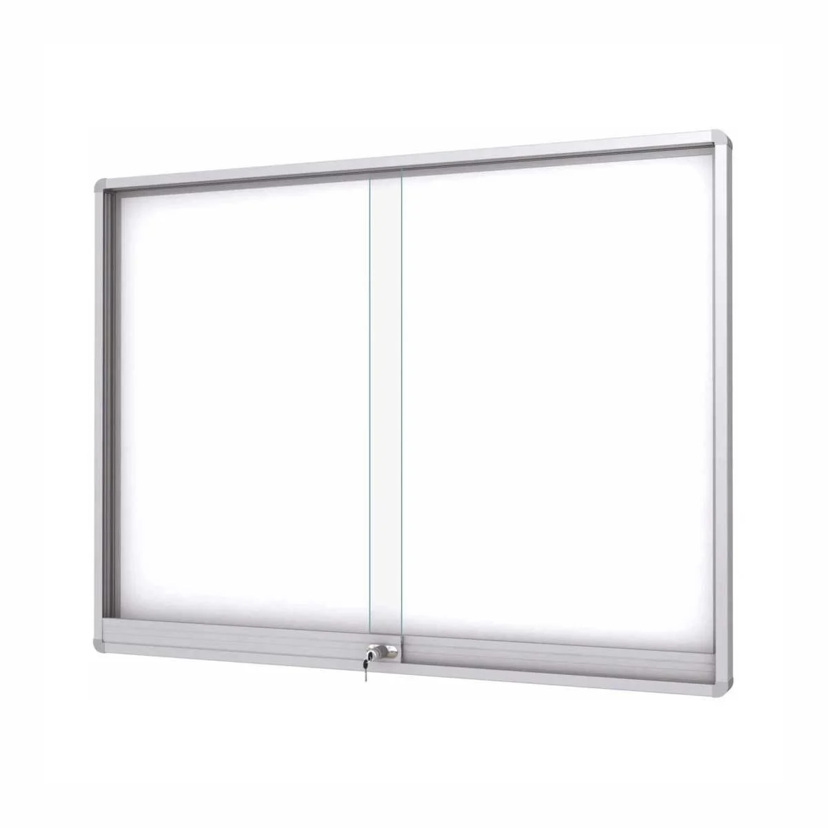 Magnetna oglasna tabla u AL ramu Tabla se koristi za oglašavanje i postavljenje reklamnih i informativnih letaka. Na magnetnu tablu je moguće postaviti do 8 papira A4 formata. Dimenzija table je 892x644mm. Tabla se nalazi u aluminijumskom okviru sa kliznim staklenim vratima i integrisanom bravicom za zaključavanje. Spoljnje dimenizije okvira su 930x690mm. Završna obrada je srebro mat eloksaža.