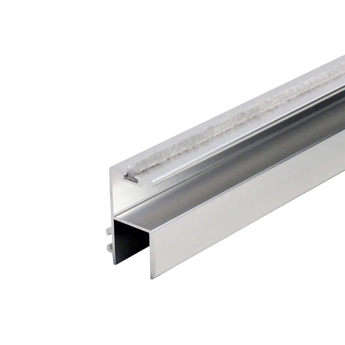 Aluminijumski dekorativni rukohvat RU 39 sjaj srebro Aluminijumski rukohvat sa četkicom se koristi prilikom izrade plakarskih vrata. Pored toga što služi kao vertikalna ručica za otvaranje-zatvaranje vrata, postavljanjem RU 39 rukohvata se smanjuje mogućnost krivljenja pločastog materijala na koji se rukohvat postavlja. Ruhohvat RU 39 je namenjen za pločasti materijal 18mm debljine. Završna obrada rukohvata je hemijska eloksaža. Prodajna dužina rukohvata: 2,7m Debljina eloksiranog sloja: 0,15µm Boja eloksaže: Sjaj srebro Spajanje sa vratima:  Spajanje aluminijumskog rukohvata sa vratima možete izvesti na dva načina: silikonom ili šrafovima. Preporučujemo Vam spajanje sa šrafovima, samo zbog eventualnog naknadnog skidanja ili korekcije. Rupe za šrafove bušiti kroz kanal sa zadnje strane rukohvata, predviđen za četkicu (pogledajte sliku). * Rukohvat RU 39 prodaje se po dužnom metru!
