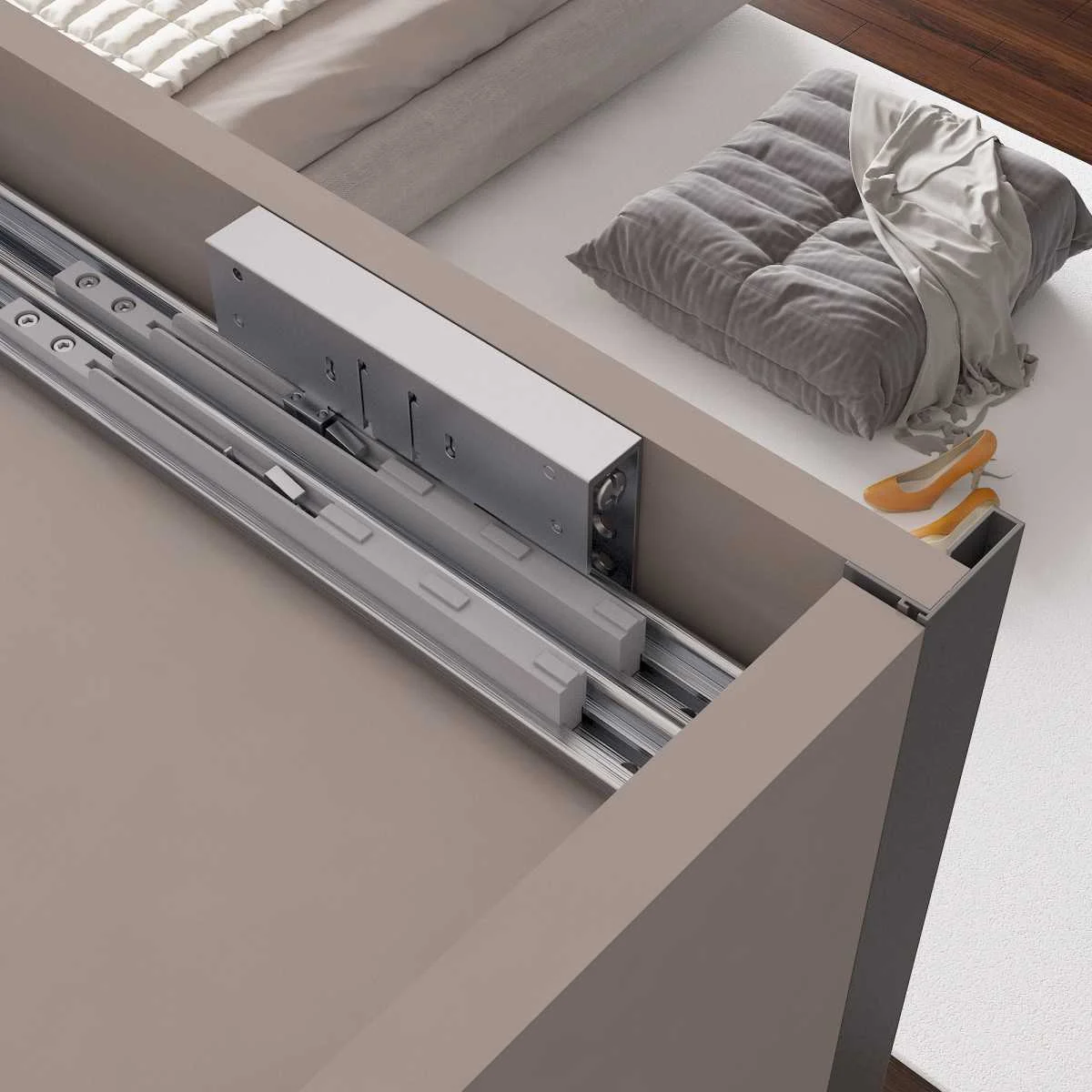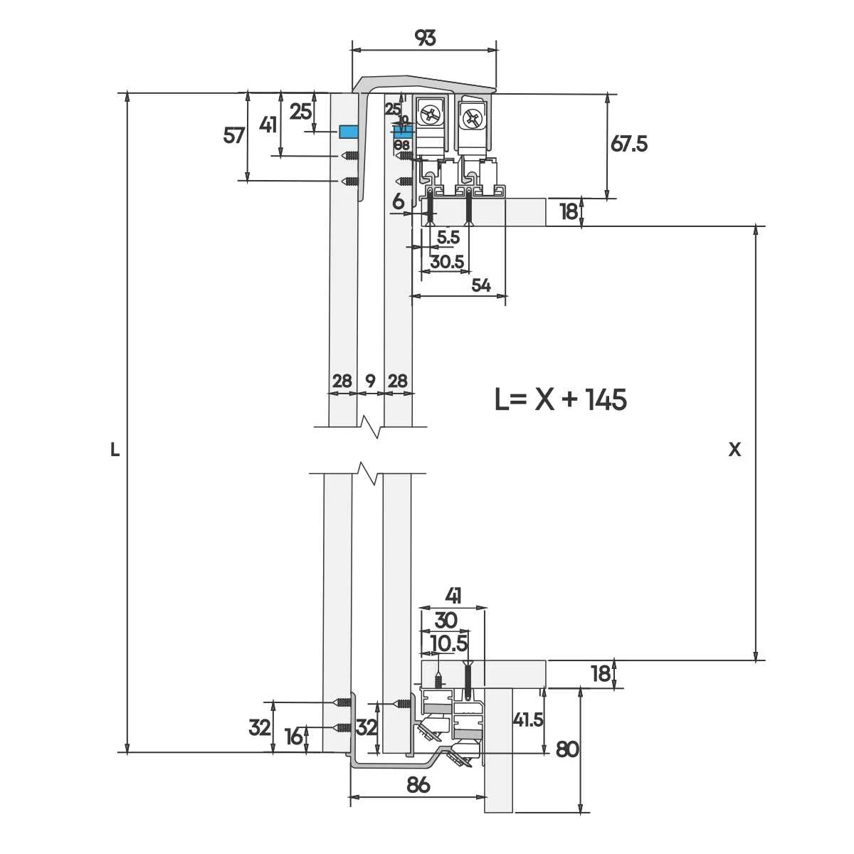 SGM Pyramid mehanizam za klizna plakarska vrata Pyramid sistem je namenjen za izradu drvenih plakarskih vrata sa osloncem na gornju šinu (šapa sistem). Raspon debljina ispune koju podržava SGM Pyramid sistem je od 16 do 48mm, dok je maksimalno opterećenje do 80kg max. (po vratima). Usporivači se ubacuju u gornju šinu pre montaže gornje šine na plafon korpusa, a nakon postavljanja vrata, mogu se pozicionirati imbus ključem u određeni položaj. Donji mehanizmi se montiraju jednostavnim guranjem vrata ka korpusu (click sistem). U prodajnom setu se nalaze mehanizmi za spoljna i unutrašnja vrata, kao i četiri usporivača koji omogućavaju meko zatvaranje svih vrata u oba smera kretanja. Preporučujemo i zatezače/španere za klizna vrata koji mogu da spreče eventualnu devijaciju vrata nakon određenog vremenskog perioda. U segmentu "Brošure" možete pronaći PDF dokument sa svim detaljima koji su vezani za Pyramid sistem.