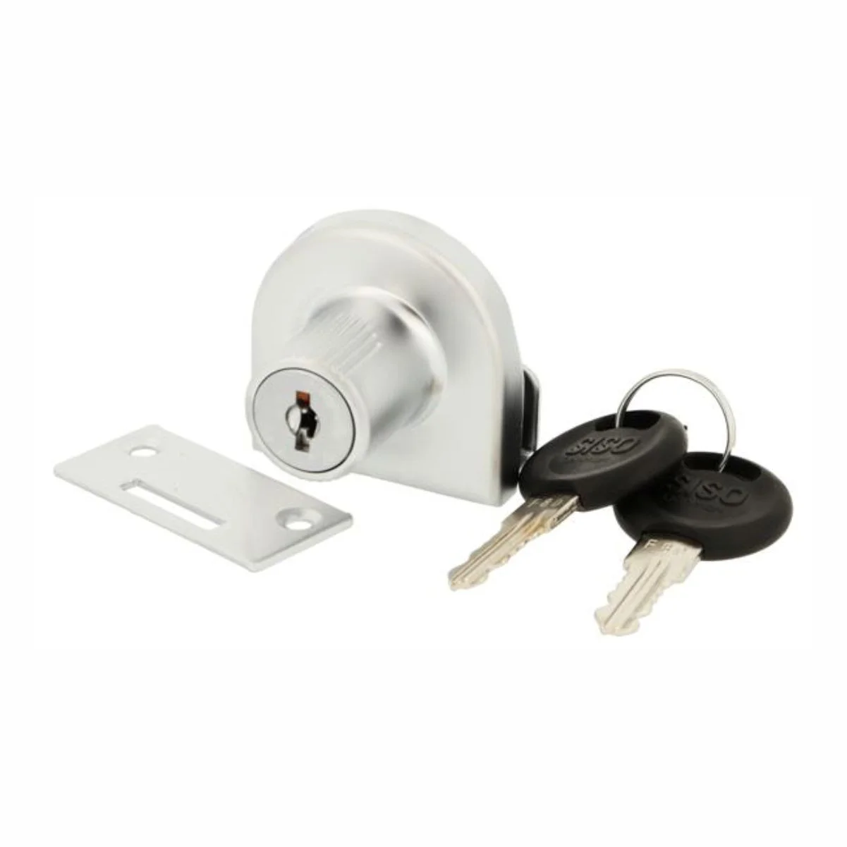 SI bravica za nebušena staklena vrata 918 Bravica se koristi za staklena krila 4-6mm debljine. U setu sa bravicom dolaze dva ključa i metalni prihvatnik za jedna vrata. Ukoliko se bravica postavlja na korpus koji ima dvoja vrata potrebno je koristiti poseban prihvatnik (š:5894) Završna obrada bravice: Mat srebro