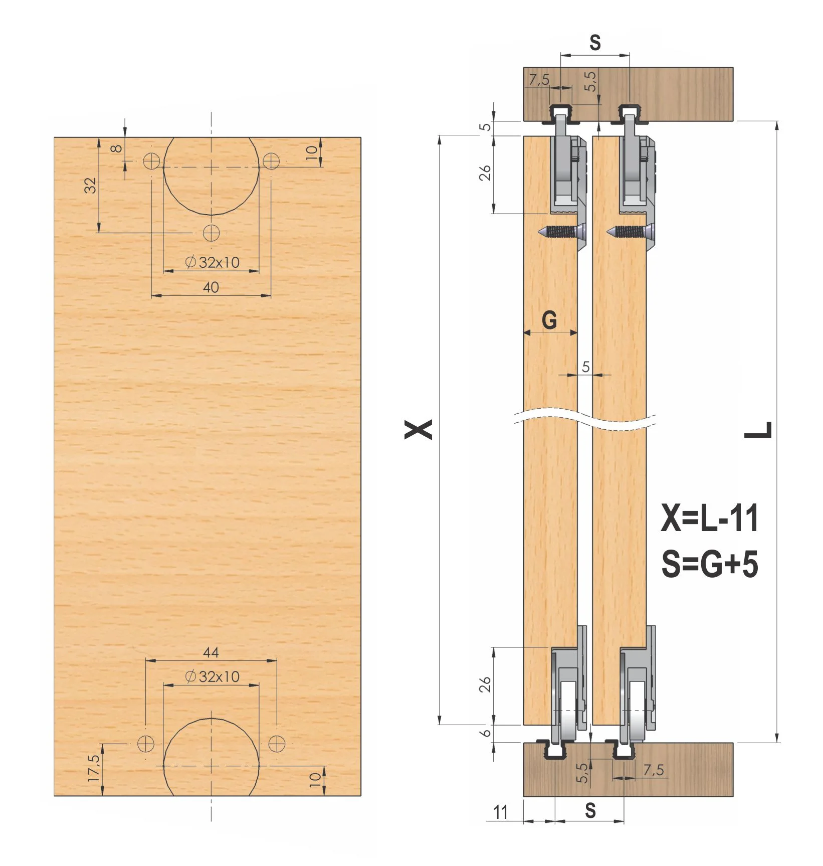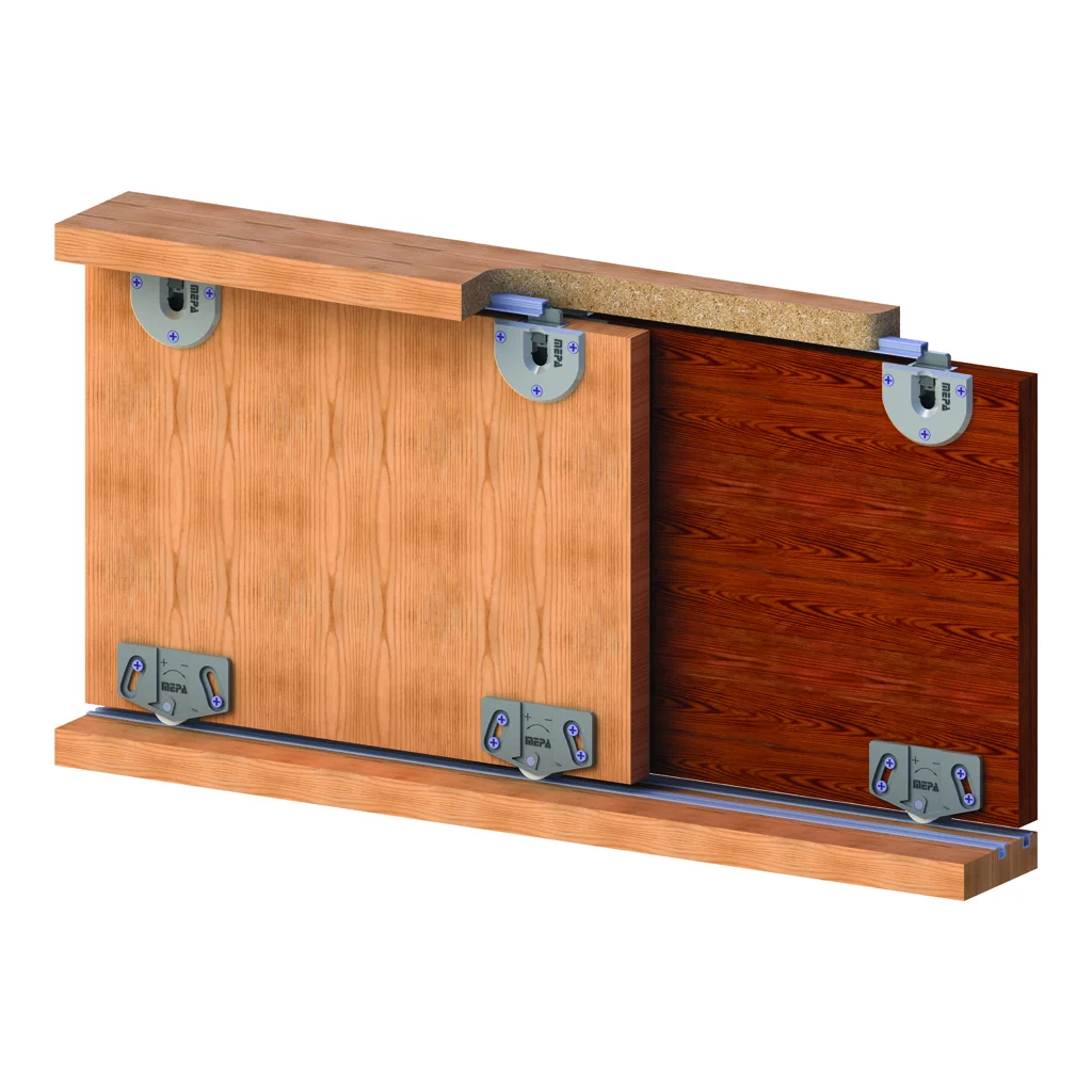 LV SKM 15 mehanizam za laka klizna vrata SKM 15 mehanizam je namenjen za laka klizna vrata, maksimalne nosivosti do 15 kg. U setu se nalaze dva gornja i dva donja točkića za klizna vrata. Za montažu LV SKM 15 sistema, potrebno je ukopavati 4 otvora prečnika 35mm sa na zadnju stranu vrata. Boja mehanizma: Braon