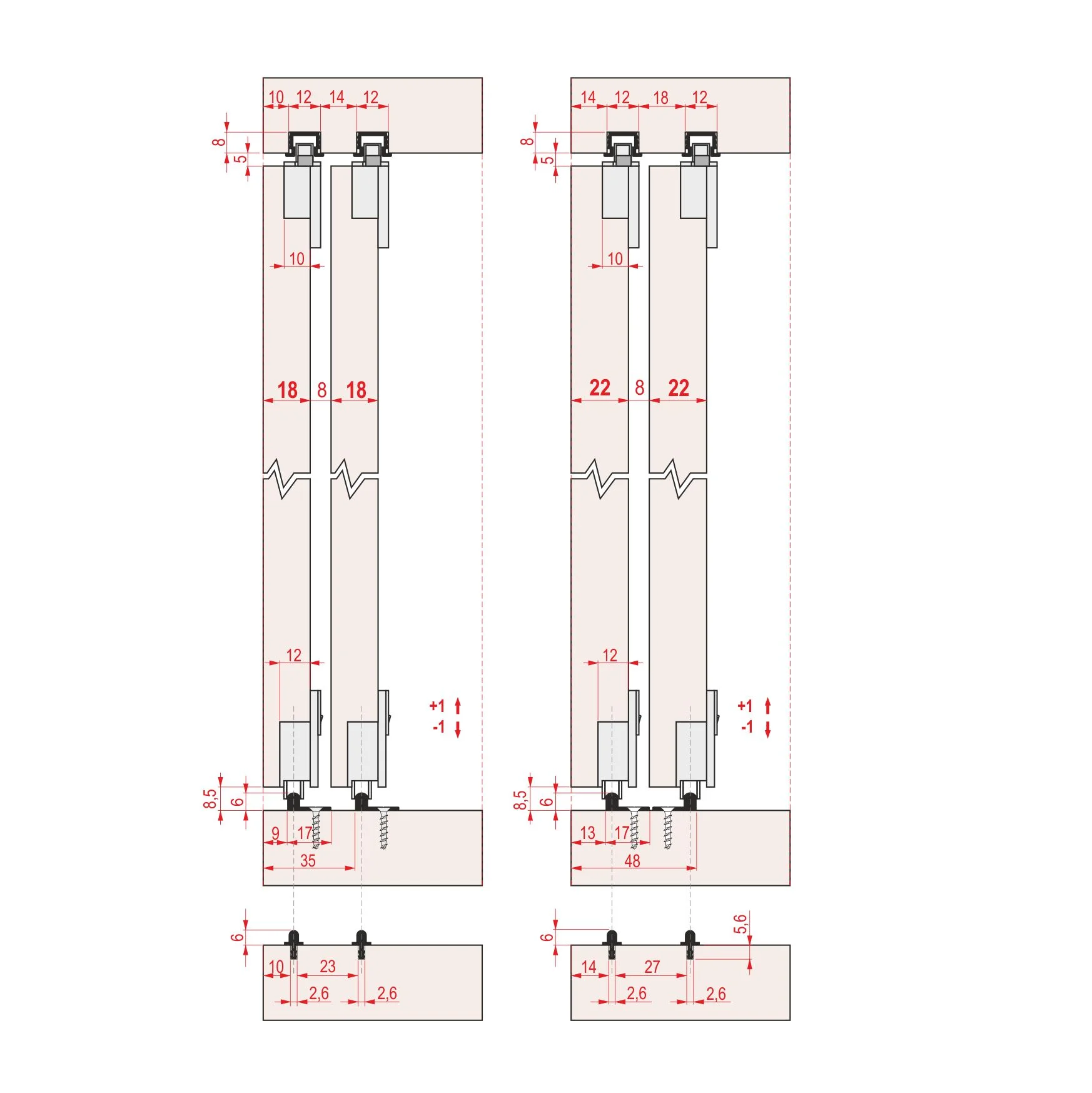 Aluminijumska ukopavajuća gornja šina SM 2144. Aluminijumska SM 2144 ukopavajuća gornja šina, koristi se za drvena klizna plakarska vrata sa mehanizmom SM 2144 nosivosti do 40kg. Aluminijumska gornja šina SM 2144 eloksirana je u srebro mat eloksažu. Prodajna dužina al gornje ukopavajuće šine SM 2144 je: 2m, 3m, 4m i 6m. Mehanizam SM 2144 i Al donje šine možete pogledati dole u povezanim proizvodima.