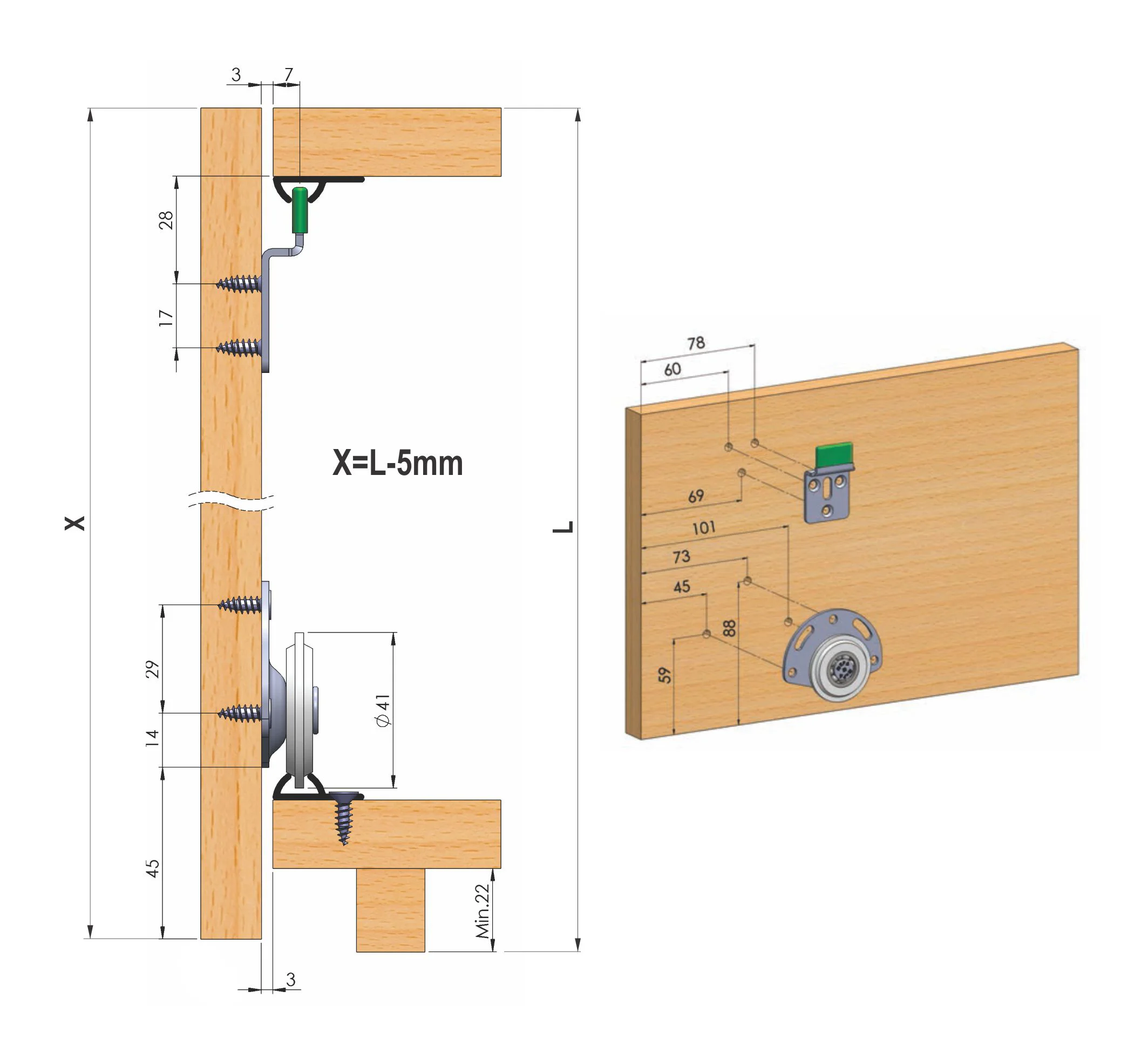 SM 37 metalni mehanizam Metalni mehanizam SM 37 za klizna vrata, nosivosti do 37 kg. Mehanizam se koristi kada je na korpusu potrebno ugraditi samo jedna vrata. Kod ovog mehanizma vrata se postavljaju van korpusa. Gornje i donje šine za mehanizam SM 37 su identične i maksimalne dužine do 6m.