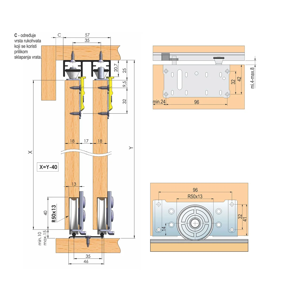SM 80 gornja 2k šina AL SM SM 80 gornja 2k šina koristi se za SM 80 klizni metalni mehanizam. Debljina eloksaže: 0,15µm Završna obrada: Srebro mat eloksaža *Cena se odnosi na dužni metar