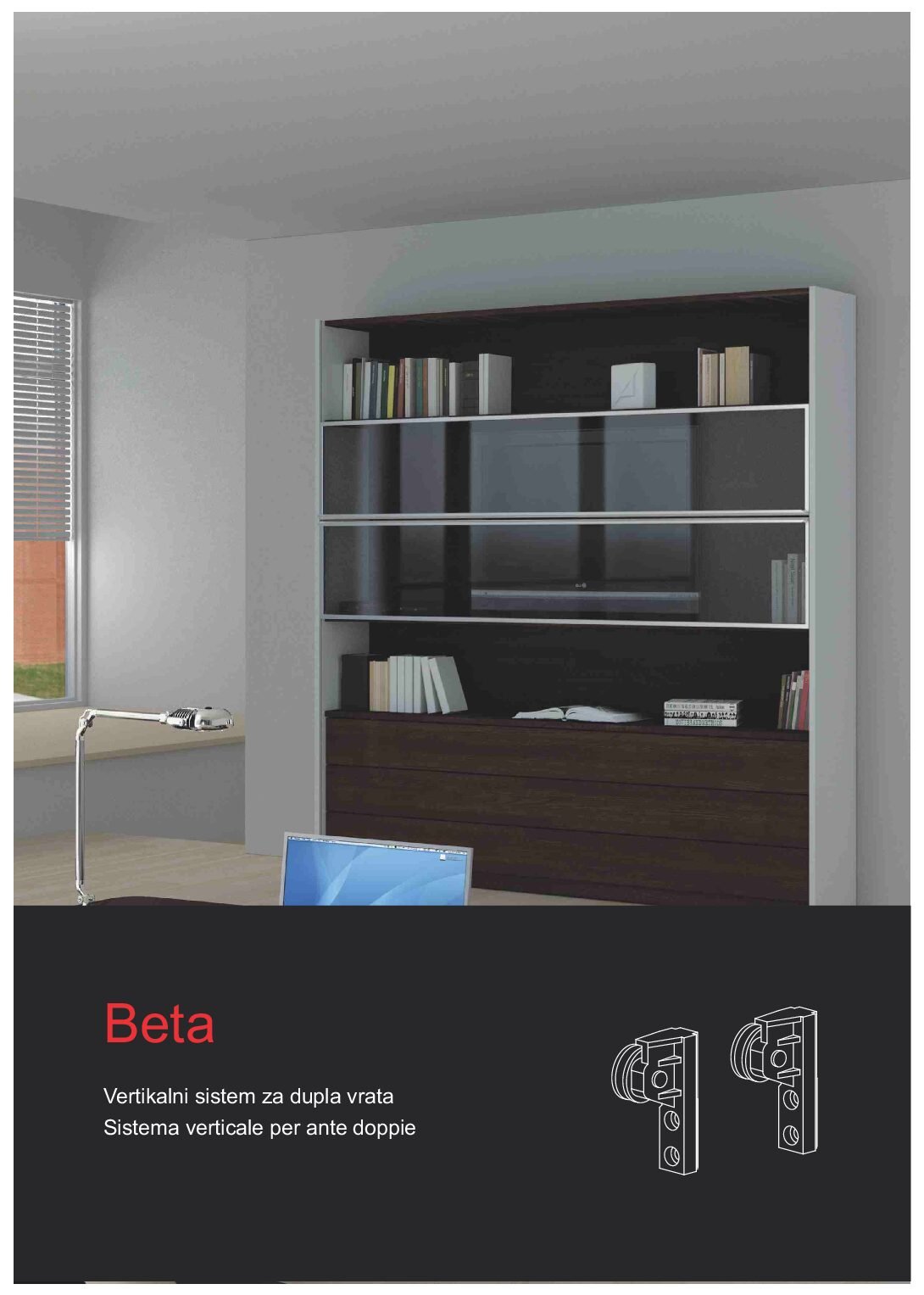 Klizni mehanizam BETA 460 koristi se kada je potrebno napraviti staklena klizna vrata debljine 4mm sa sinhronizovanim vertikalnim otvaranjem i zatvaranjem. Mehanizam Beta 460 namenjen je za klizna vrata minimalne visine 460mm i maksimalne visine 600mm. Maksimalna težina po vratima ne bi trebala da prelazi 15kg.
