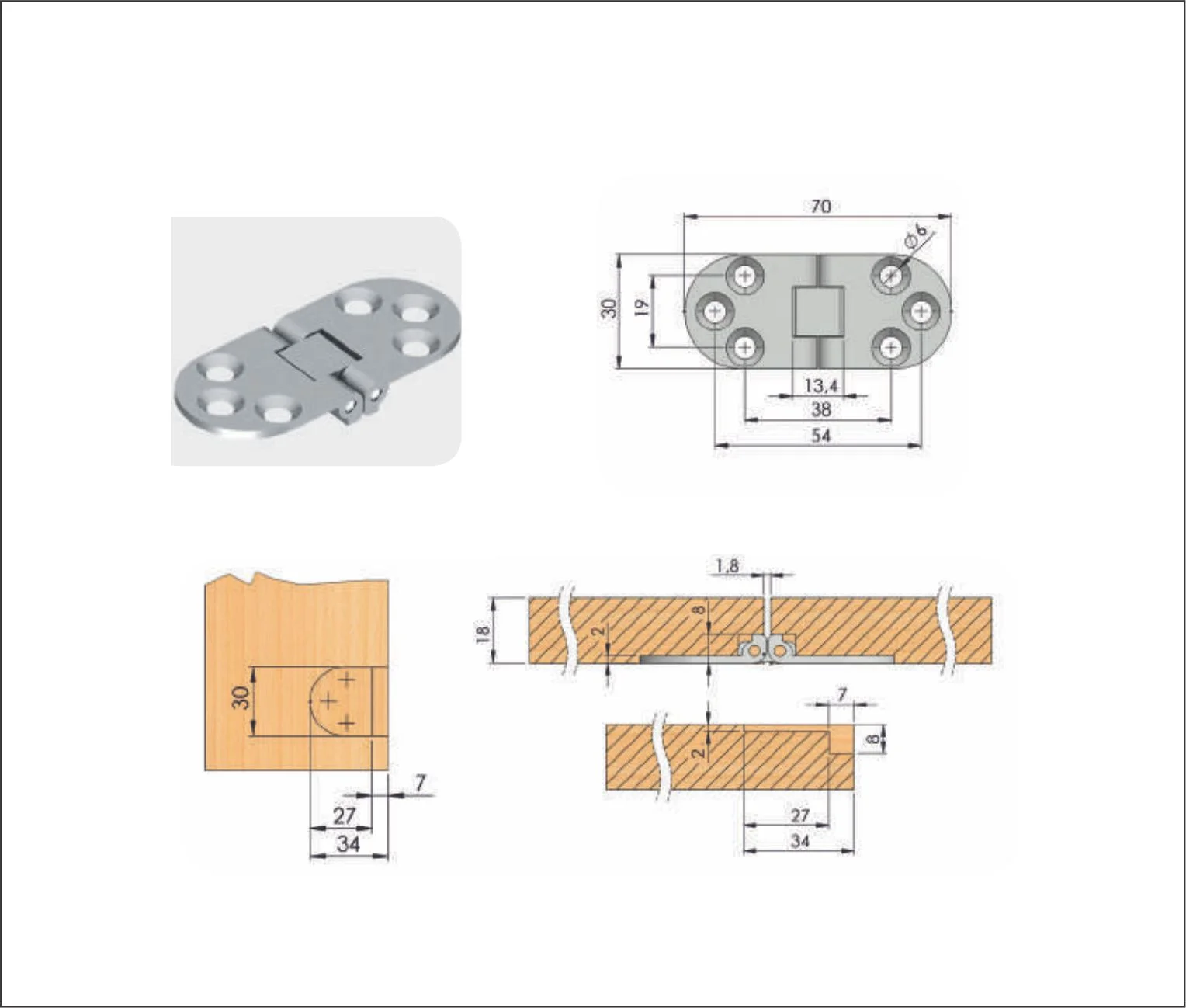 MZM metalna šarka za sklopivi sto. Koristi se kod izrade sklopivog stola sa SMT kliznim šinama. Šarka se ukopava u sto. MZM šarka se prodaje na komad. Završna obrada MZM šarke je srebro sjaj.