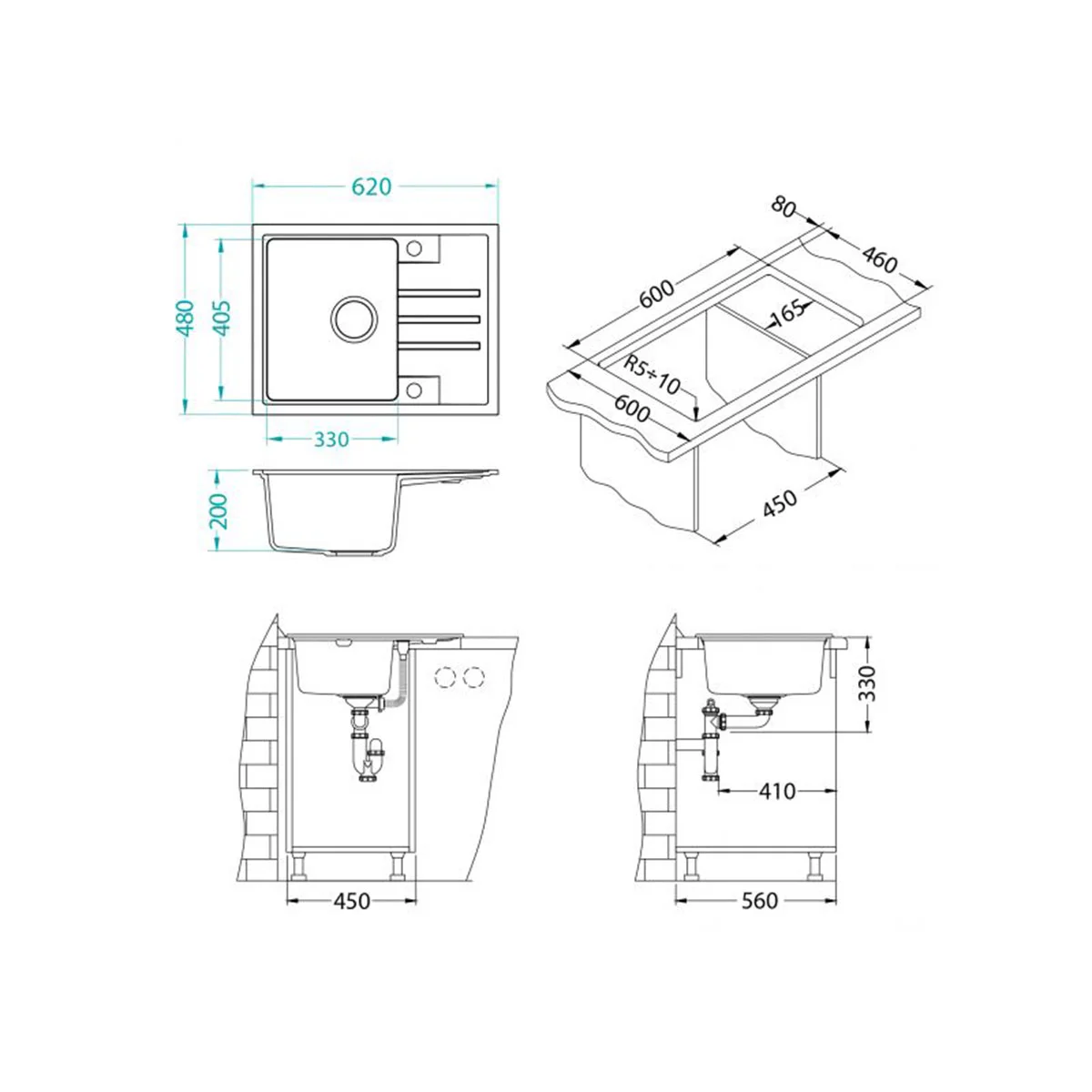 SU U ALV Sudop.INTERMEZZO 30 Materijal: granital Orijentacija: univerzalna Način ugradnje: potpuno usadni (f) / ugradni (u) Broj posuda: 1 Dimenzija (mm): 620x480 Veličina posude: 330x405x200 Minimalna širina ormarića (mm): 450 / 800 Težina (kg): 16 Sifon uključen: da Obrada: G81 - concrete. Granitni materijal granital je mešavina 70-80% granitnih čestica koje su povezane sredstvom za povezivanje visokog kvaliteta što sudoperi osigurava izdržljivost, trajnost, savitljivost i otpornost na temperaturne šokove. Pažljivo obrađena površina sudopere je glatka i na dodir ugodna, pa tako i olakšava čišćenje sudopere.