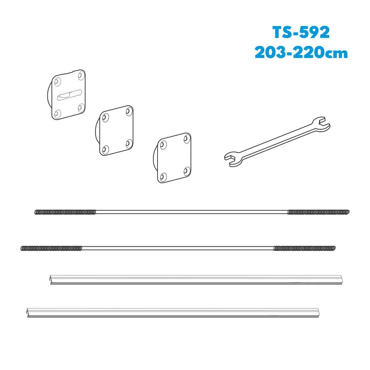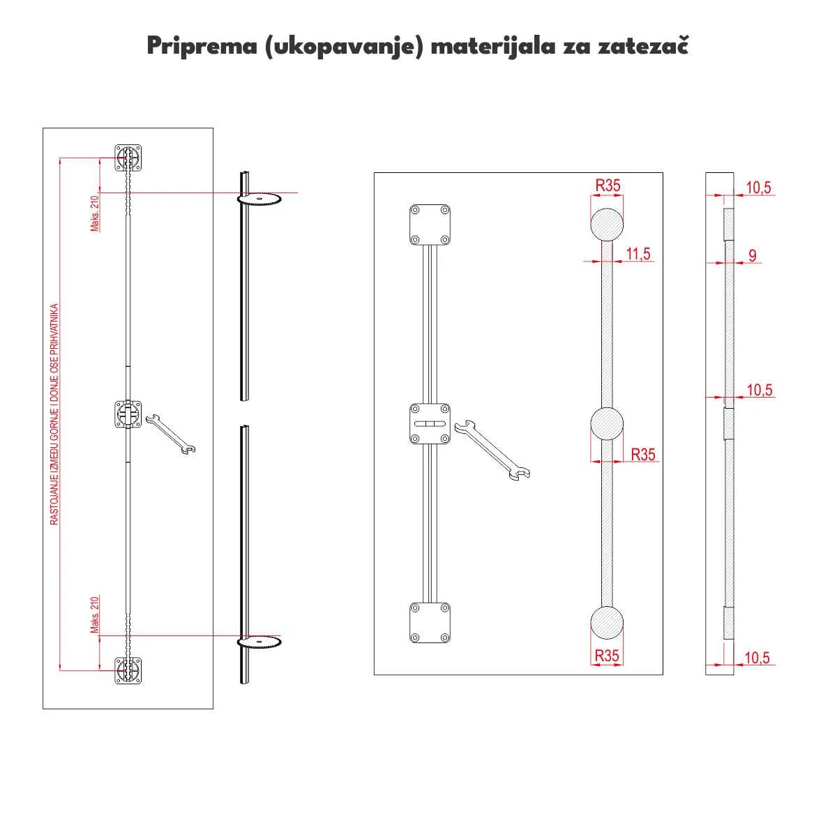 TS-592 zatezač plakarskih vrata Zatezač plakarskih vrata italijanske firme Terno Scorrevoli za vrata visine od 203cm do 220cm. Zatezači se koriste za preventivno ispravljanje mogućeg krivljenja vrata, ukoliko se ne postavljaju rukohvati ili ukrutni profili. Minimalna debljina ispune je 16mm.