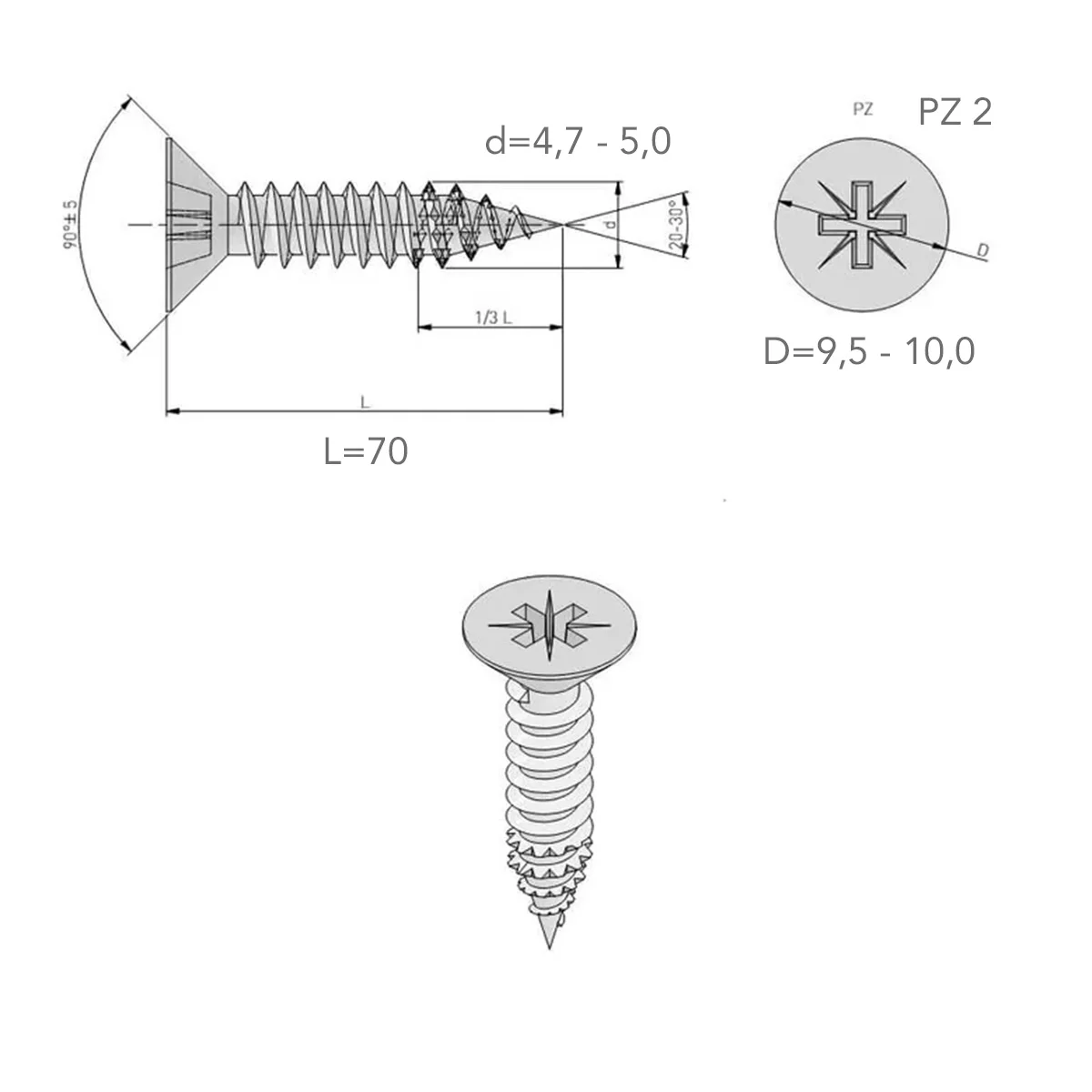 VIJAK 5x70 IRONFAST GTV - nazubljen na 1/3 dužine navoja - dobro profilisan PZ ulaz - visok kvalitet izrade – uvek iste dimenzije i tolerancija - upuštena glava - navoj po celoj dužini Materijal/završna obrada: čelik/beli cink Primena: iverica/medijapan * PZ ulaz – skraćeno od pozidrive. Najpopularniji ulaz za vijke u industriji namještaja. Odlikuje se dodatnim X urezom, što rezultira boljim uklapanjem prihvatnika u vijak. Dimenzija prihvata je u skladu sa veličinama vijaka. PZ1 – 3,0 mm (dimenzija prihvata) PZ2 – 3,5-5,0 mm (dimenzija prihvata) PZ3 – 6,0 mm (dimenzija prihvata)