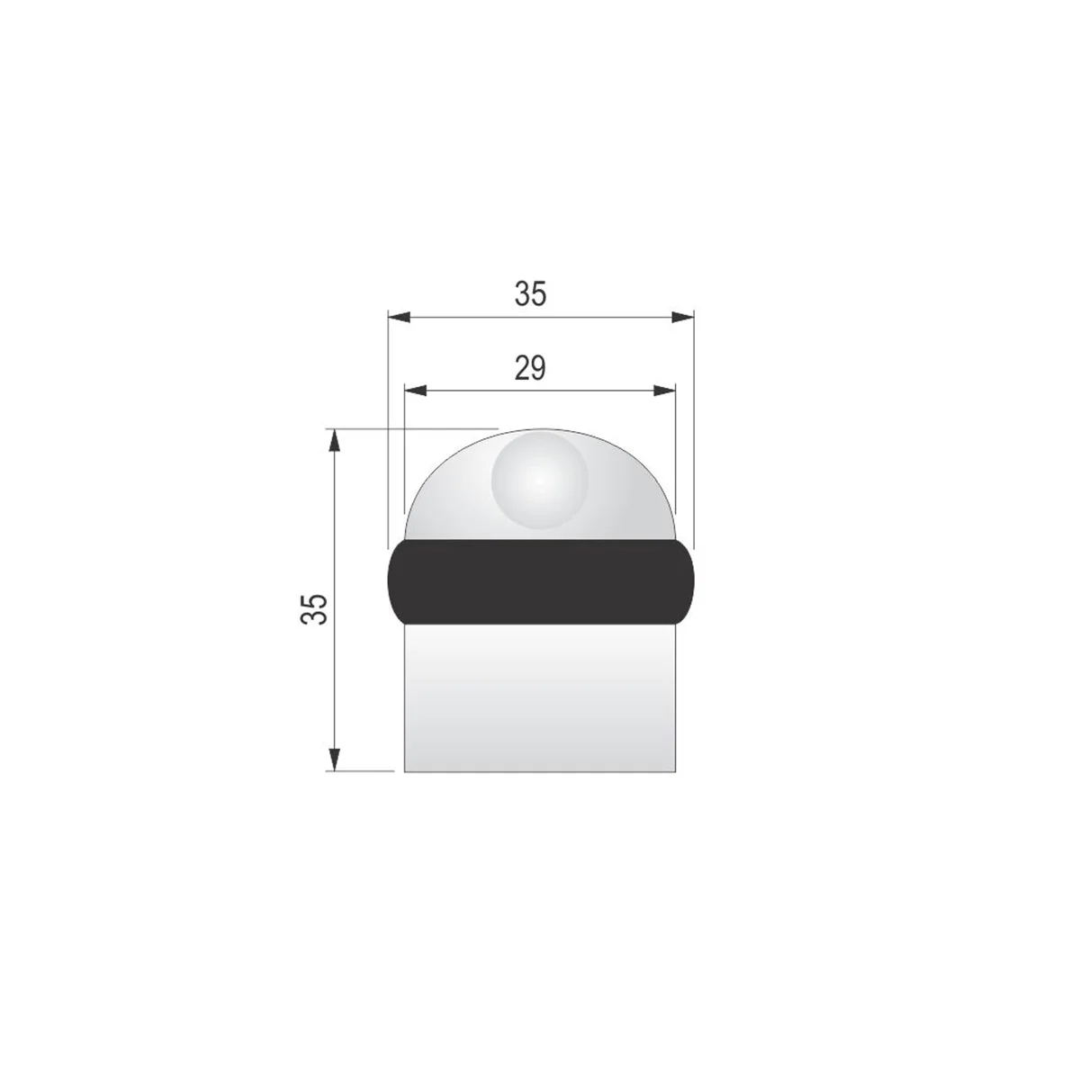 Metalni stoper za vrata sa providnim gumenim umetkom za ublažavanje udarca Stoper je eloksiran u sjaj srebro eloksaži. Visina stopera je 35mm.