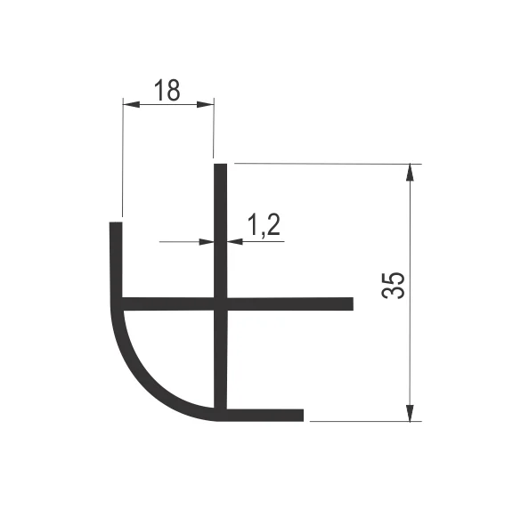 Aluminijumski vezni profil 1052 Profil 1052 se koristi za spoj pločastih materijala, prilikom izrade namještaja. Al profil spaja dva pločasta materijala pod uglom od 90 stepeni. Namenjen je za materijal 18mm debljine. Završna obrada profila je proces hemijske eloksaže. Prodajna dužina profila: 3m Debljina eloksiranog sloja: 0,15mm Boja eloksaže: Srebro mat