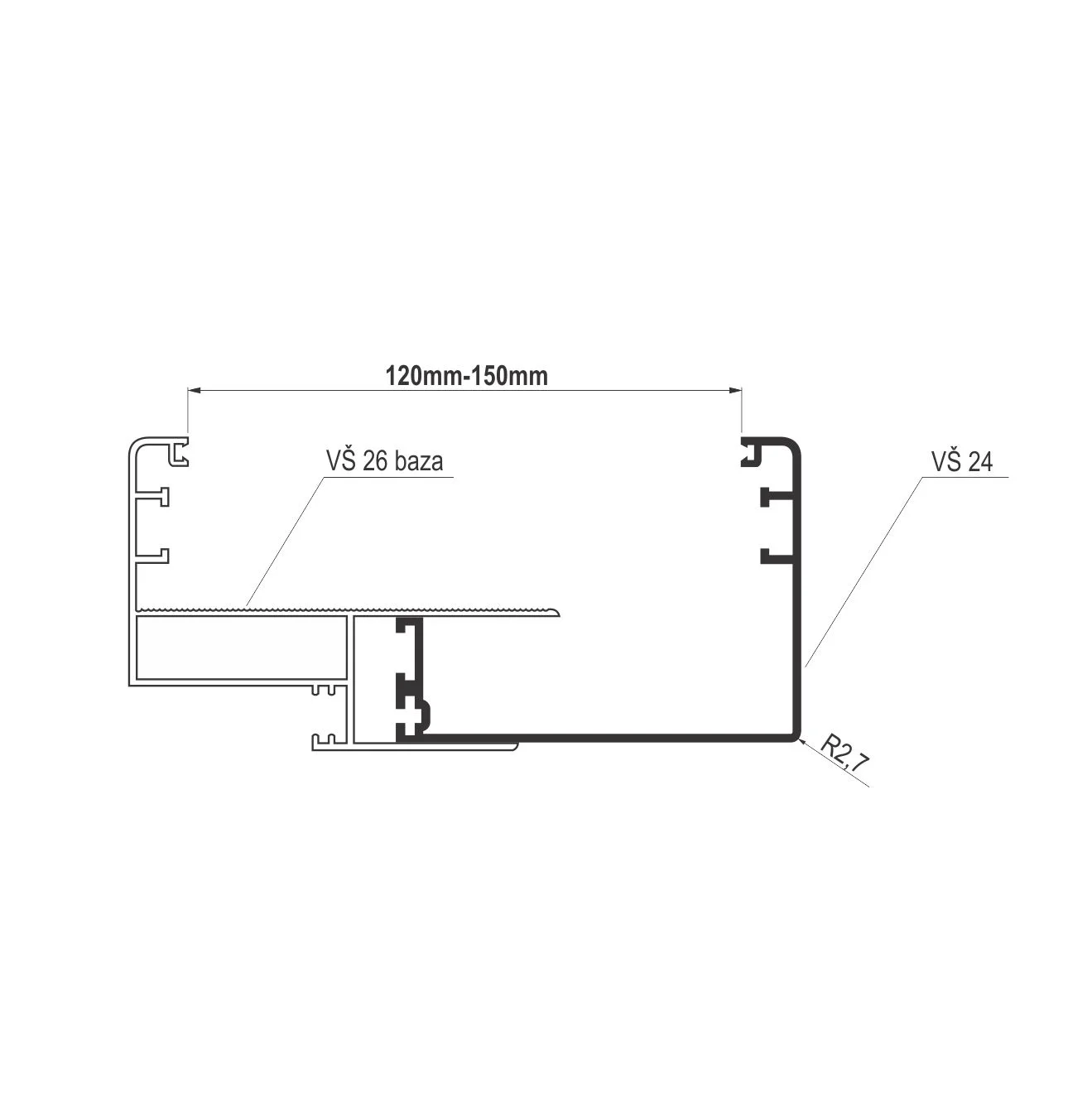 Aluminijumski sirovi pervajz profil VŠ 24 VŠ 24 štok profil kombinuje se sa bazom (VŠ 26) kada je debljina zida 120mm do 150mm, a aluminijumski međuprofili (VŠ 27 ili VŠ 28) ubacuju se između ova dva profila kada je debljina zida veća od 150mm. VŠ 24 pervajz profil je sirov, što znači da nije eloksiran. Dužina VŠ 24 sirovog pervajz profila je 5,5m.