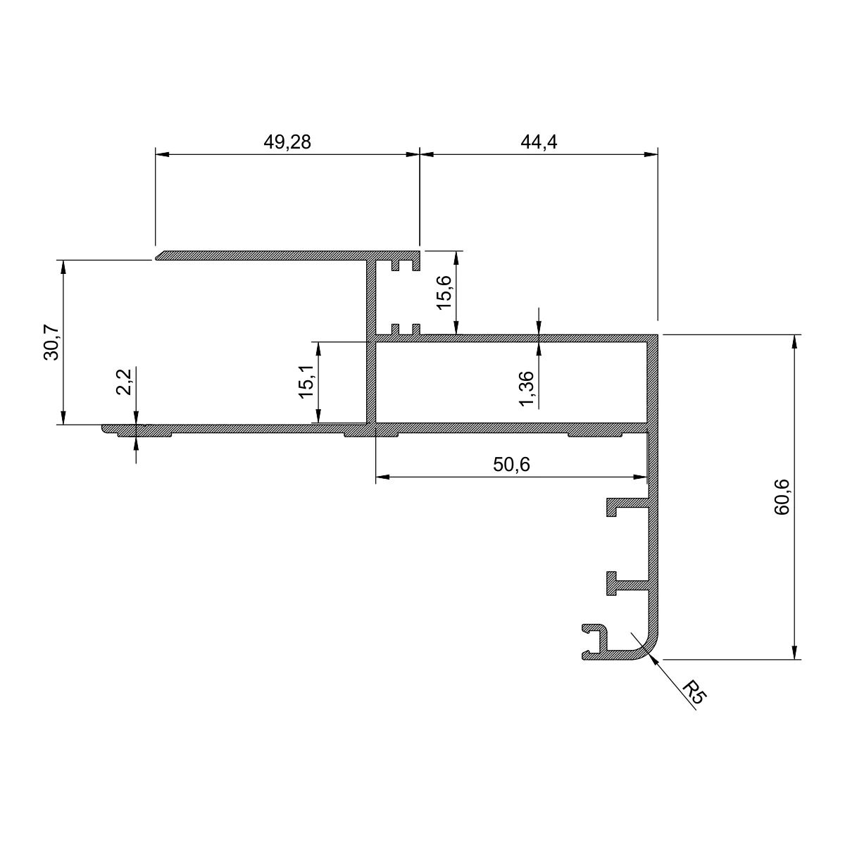 Aluminijumski štok profil VŠ 26 baza VŠ 26 štok profil je baza za izradu aluminijumskih štokova i ovaj profil se kombinuje se svim ostalim profilima koji su potrebni za izradu jednog štoka u svim varijantama. U štok profil VŠ 26 se uvlači diht guma koja sprečava lupanje vrata i prolaz svetosti. VŠ 26 štok profil je eloksiran u srebro mat eloksažu. VŠ 26 štok profil je 5,5m dužine.