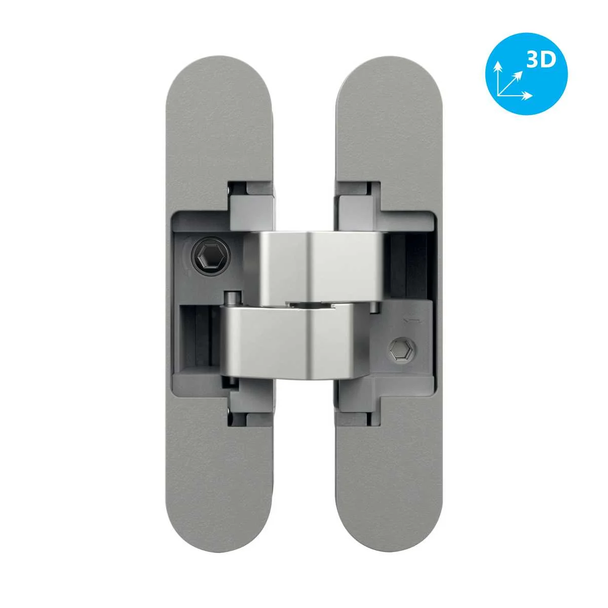 Skrivena (SOS) šarka za sobna vrata - AN 150 3D Šarka radi na principu kliznih ležajeva za koje nije potrebno održavanje Šarka se ukopava u štok i u plot sobnih vrata. AN 150 model šarke ima mogućnost podešavanja u sve tri ose: po visini: ± 2,5mm po dubini: ± 1,0mm sa strane: ± 1,5mm Maksimalno opterećenje: 40kg za dve šarke na vratima dimenzija (2100 x 900mm) Ugao otvaranja: 180° Boja šarke i poklopca: Hrom saten Materijal: Liveni cink * Cena se odnosi na komad artikla