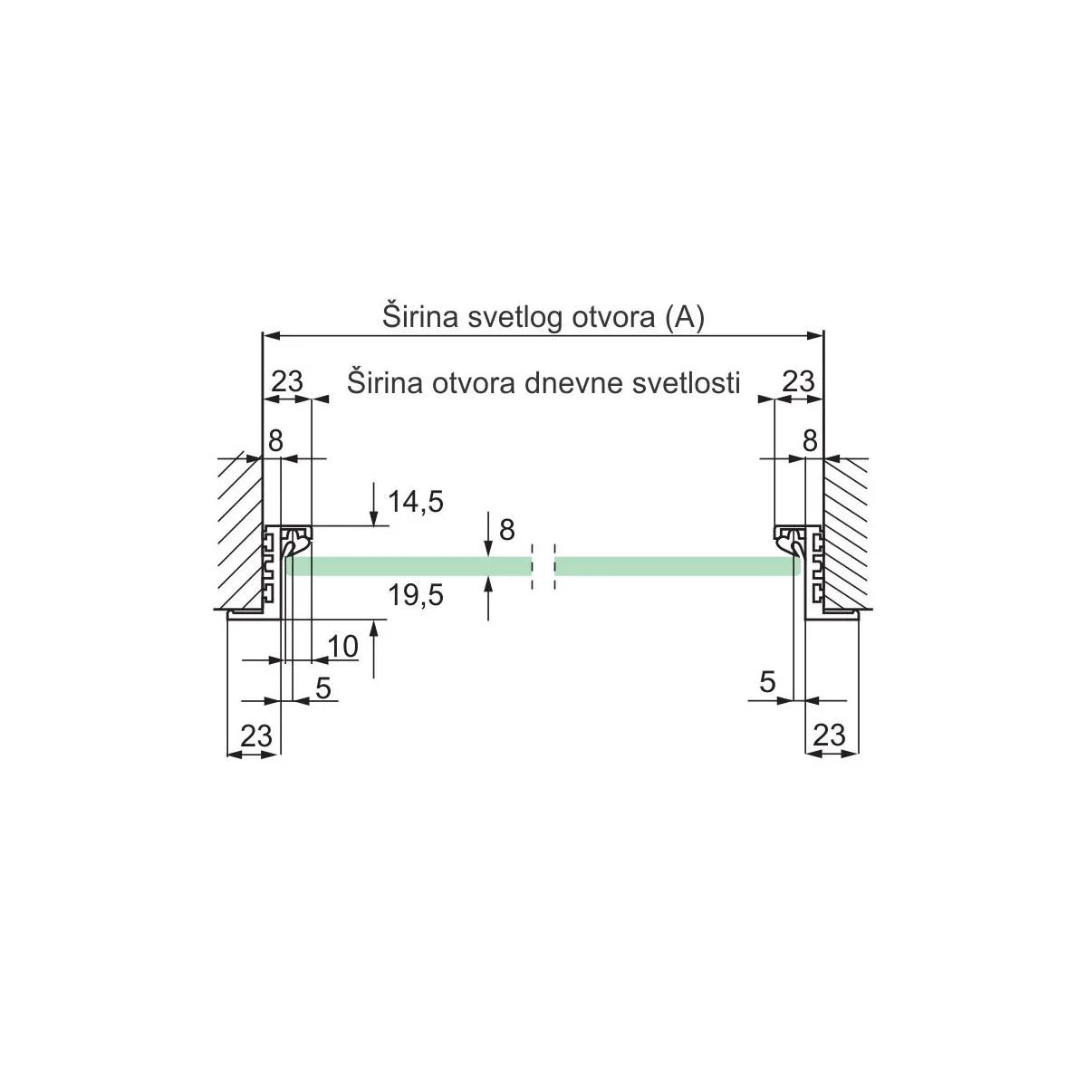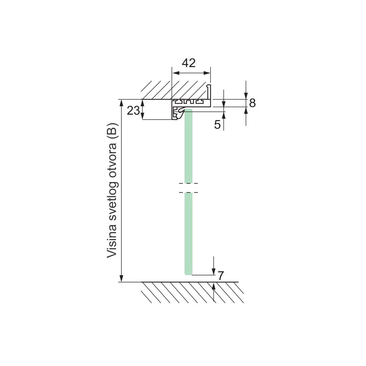 Aluminijumski Z štok profil za izradu Al štoka bez pervajza za staklena vrata. Al štok Z profil je maksimalne dužine 3,2m i postavlja se direktno na ivicu zida unutar otvora za vrata. Završna obrada Al štok Z profila je srebro mat eloksaža.