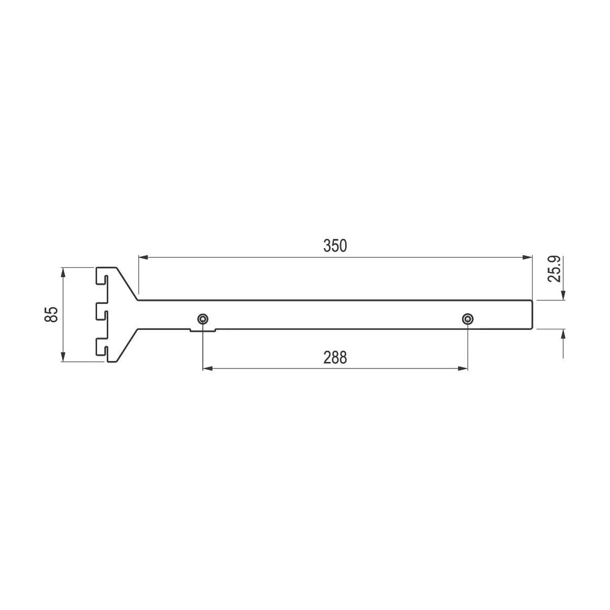 WI nosač police L=350mm H25