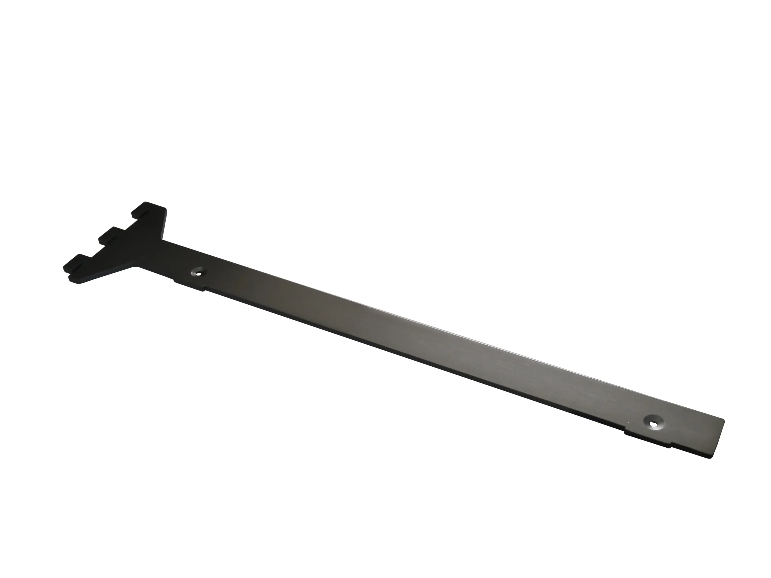 WI nosač police - Ravni 350mm Bočni nosač police se koristi prilikom postavljanja polica u otvorenom garderoberu. Montira se na bočne stranice (kantove) polica i nakon toga se kači na vertikalne noseće profile. Za jednu policu je potrebno 2 nosača kao i 2 seta za montažu police, u zavisnosti od toga da li je polica samostalna ili je jedna u nizu više polica. Nosač je namenjen za police max 25mm debljine i 350mm dužine. Završna obrada: Antracit siva * Cena se odnosi na komad artikla