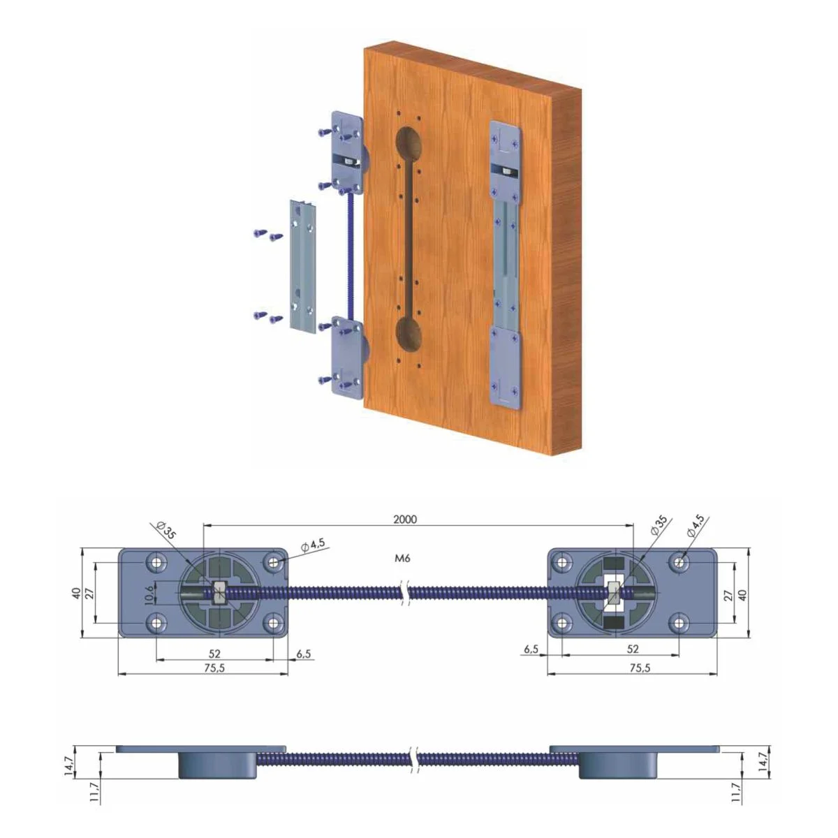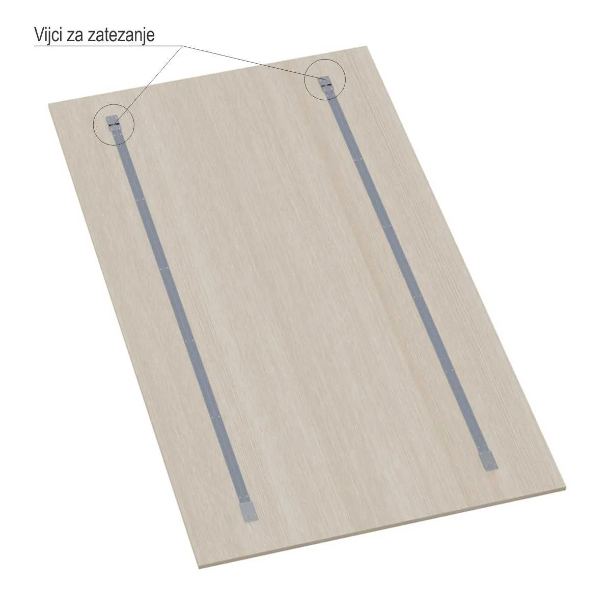ZT-M6 zatezač plakarskih vrata sa metalnim poklopcem. Dužina poklopca je 187cm. Zatezači vrata se upotrebljavaju kod kliznih vrata za preventivno ispravljanje mogućeg krivljenja, ukoliko se na vrata ne postavljaju rukohvati ili ukrutni profili. Pogledajte i video prezentaciju sa detaljima za ukopavanje pločastog materijala za XT španere. Minimalna debljina ispune je 16mm.